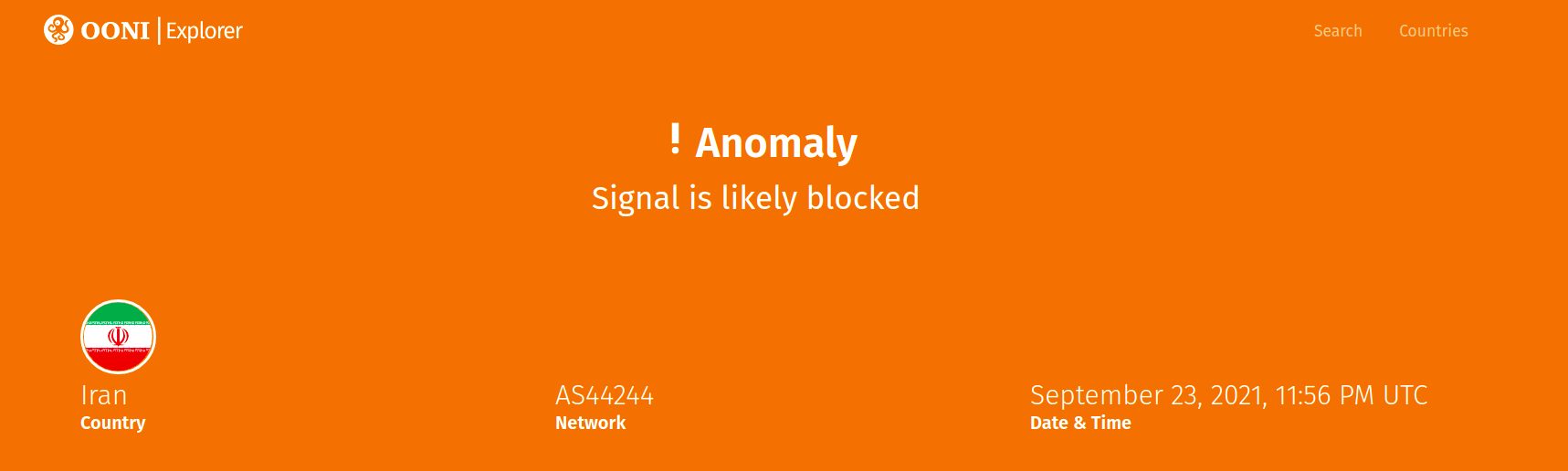 Since April 2021, OONI data analysis suggests that access to the Signal Private Messenger app has been blocked in (at least) 4 countries: Iran, China, Cuba, and Uzbekistan.
