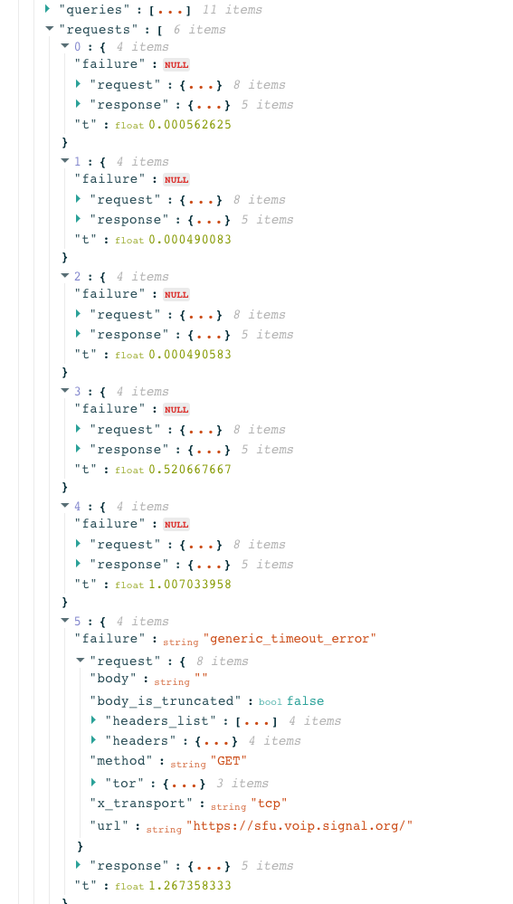 It’s important to highlight though that false positives can occur. OONI Probe Signal measurements may present anomalies due to several reasons which are unrelated to the intentional blocking of Signal. For example, false positives can occur due to transient network failures, if the Signal backend infrastructure is down, or if Signal makes changes to their infrastructure which affects how this test is performed.