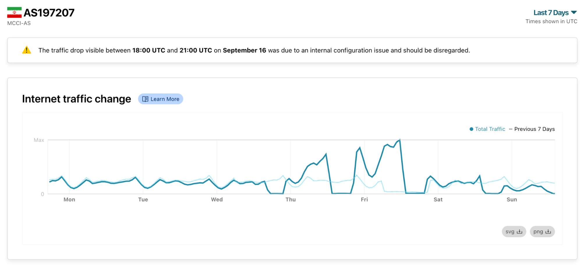 In addition to the above blocks (and many other long-term blocks), Iran experienced multiple severe outages affecting mobile networks over the past week, which are visible in the IODA, Cloudflare Radar and Kentik datasets.